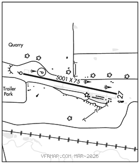 AIRPORT REMARKS: Unattended. Fuel: 100LL: Fuel avbl 24 hr self svc. Recommended tkf to East only by experienced pilots. High ground rises quickly to the East. Rwy 27 has +525′ terrain 6000′ from thld 1400′ left of centerline, +52′ terrain 1200′ from thld on extended centerline, +40′ powerline 965′ from thld 260′ left of centerline. Rwy 09 has +563′ terrain 21277′ from thld 371′ left of cntrln. Cold temperature airport. Altitude correction required at or below –24C.