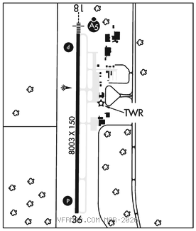 RWY 18–36: H8003X150 (ASPH–GRVD) S–82, D–104, 2D–161 PCR 330 F/D/X/T HIRL
