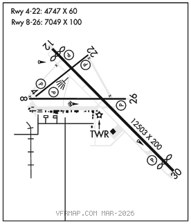 SERVICE: S4 FUEL 100LL, JET A, A+ LGT ACTVT REIL Rwys 12 and 30; MIRL Rwys 08–26 and 04–22; HIRL Rwy 12–30–CTAF. Rwy 12 PAPI unusbl byd 2.5 nm.