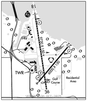 RWY 18–36: H9730X150 (ASPH–GRVD) S–120, D–218, 2S–175, 2D–413, 2D/2D2–866 PCR 490 F/A/X/T HIRL CL