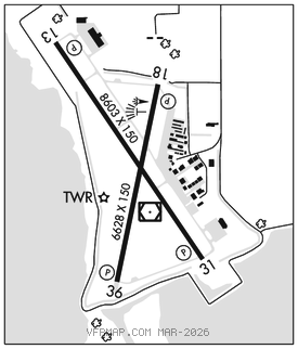 RWY 18–36: H6628X150 (ASPH) S–50, D–70, 2S–89, 2D–110 MIRL