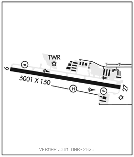 HELIPORT REMARKS: Helipad parking N of rwy not open to public. Helicopter skid ldgs on rwy and twy prohibited. Helipad ops to helipad south of rwy restricted to 6,000 lbs or less. Helipad S of rwy unlgtd. Helipad S of rwy daytime VFR use only.