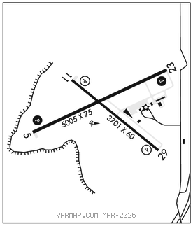 RWY 05–23: H5005X75 (ASPH) S–15 PCN 6 F/D/Y/T MIRL 0.5% up NE