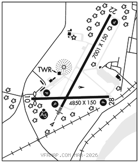 RWY 04–22: H7001X150 (ASPH–GRVD) S–95, D–175, 2D–348, 2D/2D2–850 PCN 62 R/B/W/T HIRL 0.9% up NE