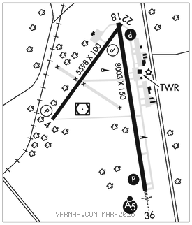 RWY 18–36: H8003X150 (ASPH–GRVD) S–101, D–169, 2D–283 PCR 400 F/B/X/T HIRL